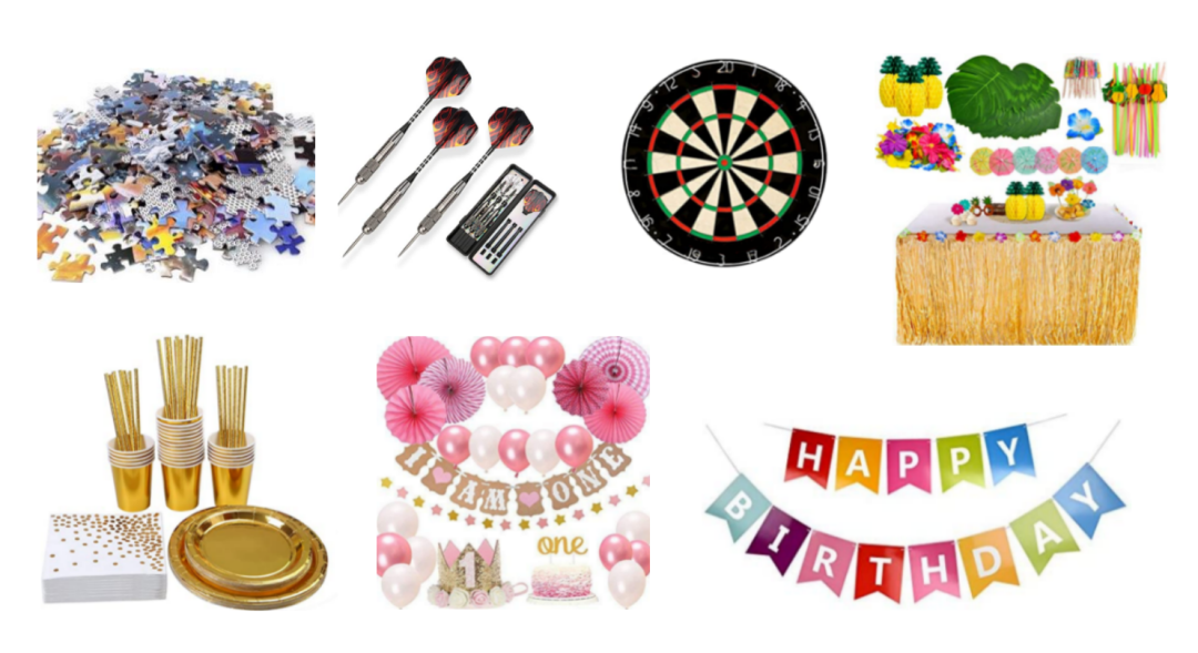 热销产品举例:拼图、飞镖、飞镖靶、气球、横幅、装饰品