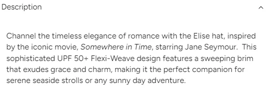 Wallaroo Hats通过强调“时尚与功能兼顾”的设计理念,成功突破了这一矛盾。例如,采用手工编织工艺、融入电影灵感和经典造型,同时搭配UPF 50+防护材质,使得产品不仅具备审美价值,也具备强大的防晒能力。这一策略打破了“功能=不美观”的固有认知,让产品既适用于户外活动,也能融入日常穿搭,从而提高产品的使用频率和市场吸引力。