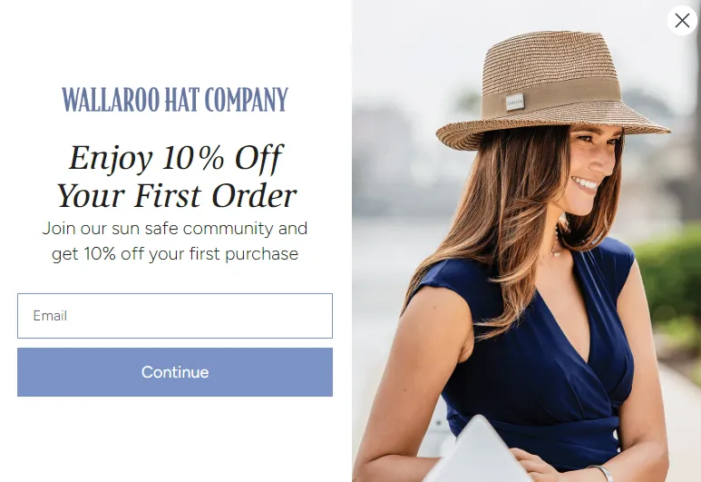 Wallaroo Hats通过首单10%折扣的策略有效吸引了新用户加入品牌社区并完成首次购买。该优惠通常通过邮件订阅或会员注册触发,为用户在浏览阶段提供明确的价格激励,同时也为品牌后续的营销活动打下了渠道基础。普华永道对Z世代调查显示,超过79%的Z世代会等待产品折扣,只有21%的人经常支付全价。
