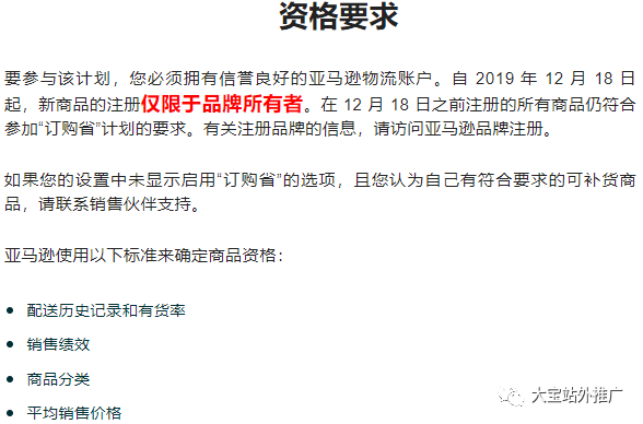 卖家绩效审核是一个持续过程,旨在确保优质的亚马逊买家体验。我们会在评估绩效时考虑您维持库存水平满足买家需求的能力、买家反馈及“订购省”订单取消等因素。如果您的绩效指标不佳,可能会影响您能否参与该计划。