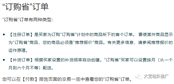订购省是一项为消费者提供日常必需品定期配送服务和折扣的计划。使用 FBA 订购省,FBA 卖家可以为定期配送的商品提供折扣,折扣费用由卖家承担。订购省非常适合需要定期购买的商品,例如洗发水和维生素,以及家用清洁剂、宠物食品、个人护理用品等日常用品。