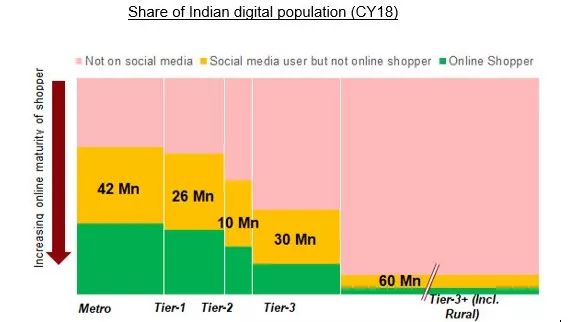 主要推动点之一就是社交网络的流行。根据Redseer更新的数据显示,印度有约1.7亿人使用社交网络但不参与网购,缺乏信任感是重要的因素,比起国际品牌及热销型号,长尾产品更容易受到质疑。千禧一代愿意获取新知识和建议,为了解产品,往往会选择在社交网络上观看测评。