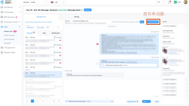 类似的买家一键拉入黑名单(图6),系统自动识别不会再发送索评邮件,帮您省时省心。