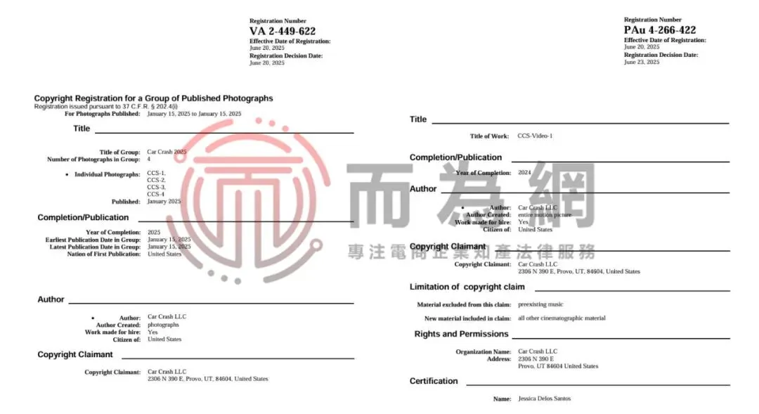 由于本案涉及的版权图片暂未公开,以下是小为查询到原告名下有两组版权,包括视频和图片,也在原告官网截取了部分产品图及视频,供卖家们参考。未经授权原告官网的产品图片都不能使用,否则会有侵权风险!