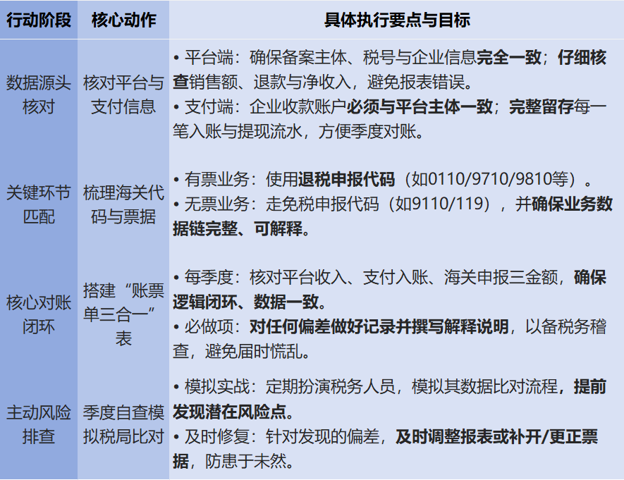 光有认知还不够,跨境卖家需要立即行动,将“三表联动”理念落地为可执行的合规闭环。以下行动清单旨在帮助你系统化地管理财务、物流和收入,最终实现业务的透明与可控。