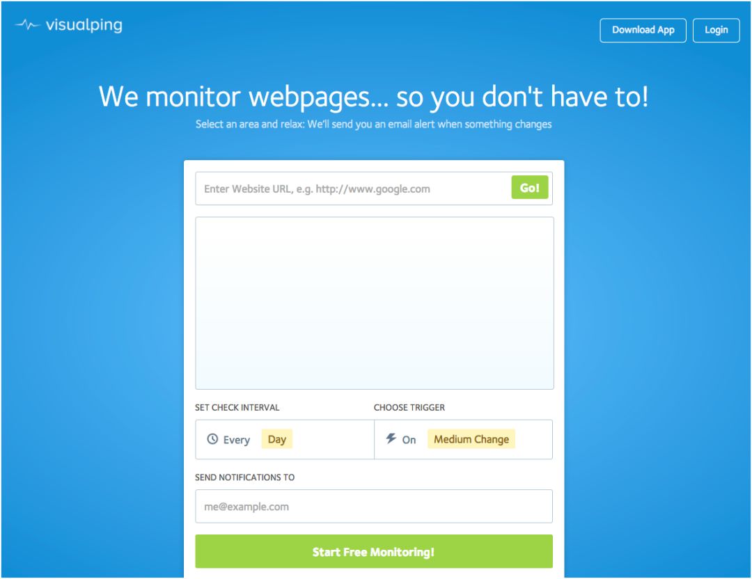 像是你可以使用Visualping这个工具监控竞争对手网站的变化,作为自己网站SEO的参考。当竞争对手的网站有任何异动的时候,根据你想要监控的频率,寄到你的信箱通知你。