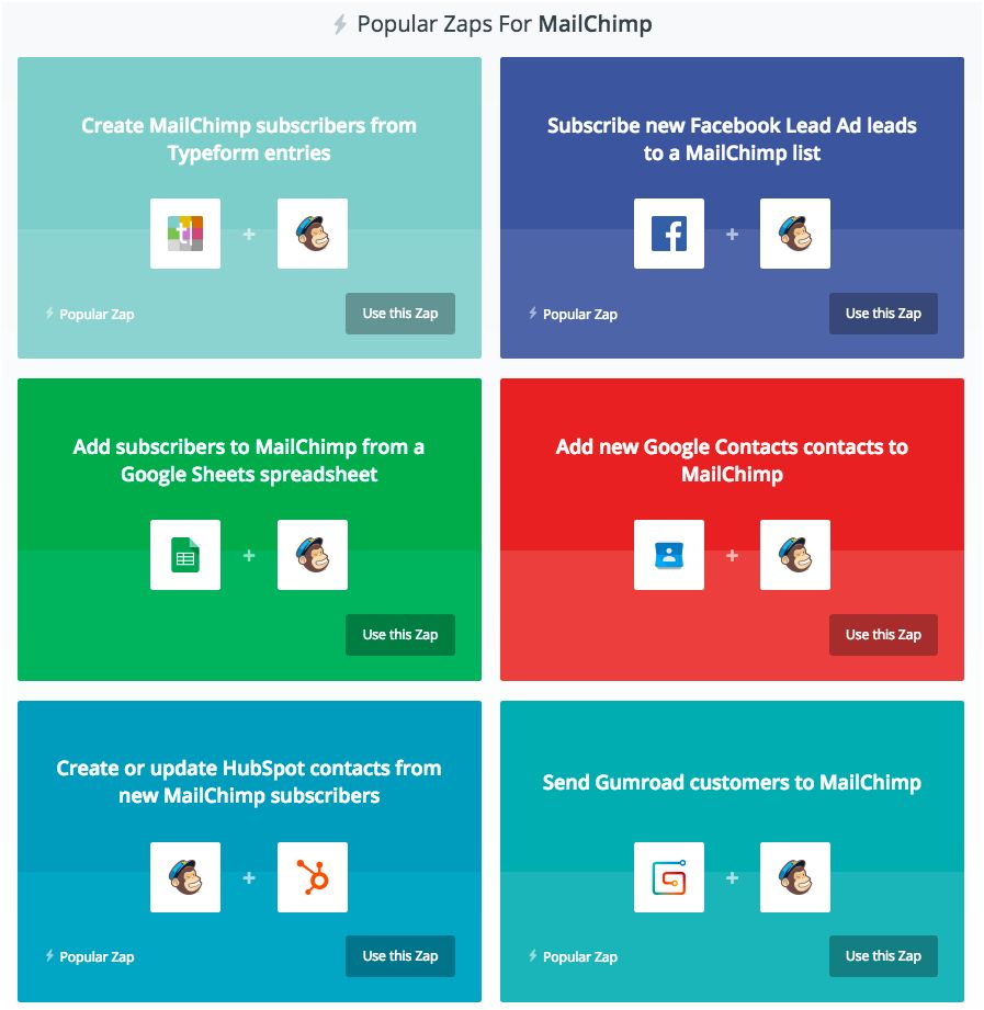 或是像在Zapier你可以将不同管道获得的email名单串接到MailChimp里面做数据的整合,甚至是透过它来管理Shopify的订单。