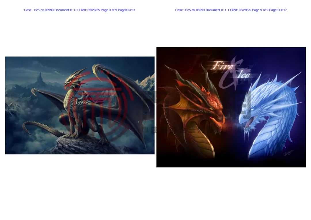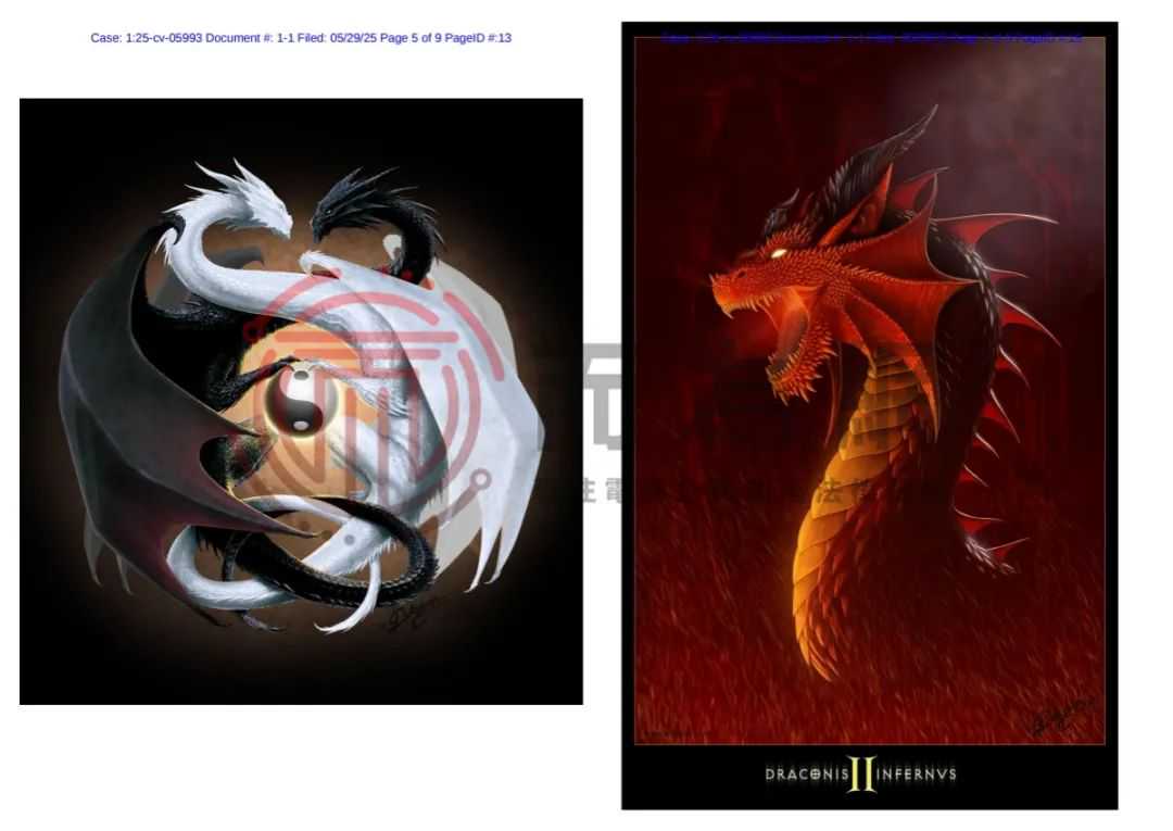 【侵权快讯】25-cv-5993 Keith版权案持续不断!这4张龙元素插画正在维权!