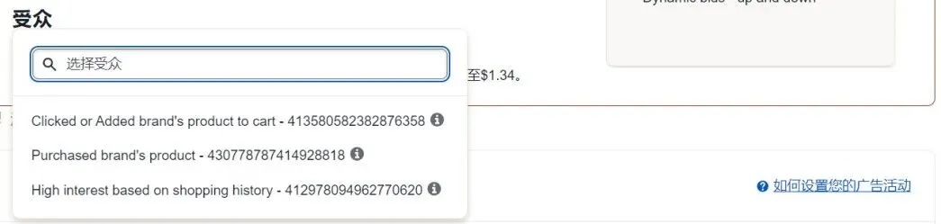 步骤4. 这里看到亚马逊已经提供好的多种受众类型,下一篇我们再详细说说这些受众分别是什么意思