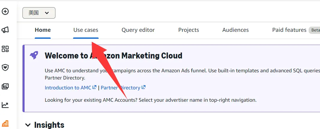 步骤1. 创建受众。你不能直接在广告平台里直接创建,要先通过广告后台进入 AMC主页。