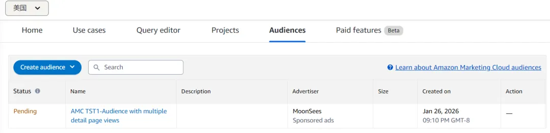 延迟性: 从 AMC 创建完成到在 SP 投放端看到受众,通常有 24 小时左右的延迟。