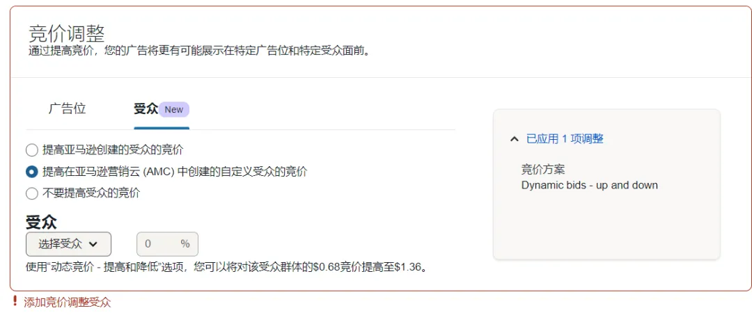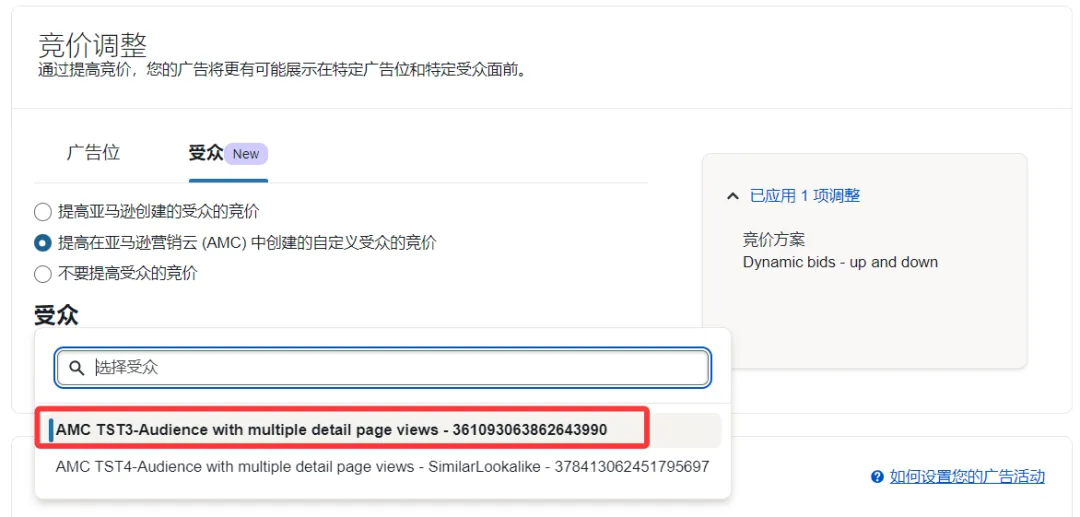 竞价调整: AMC 受众属于“优质流量”,建议初始竞价可以比通用关键词略高,以确保抢到这部分精准人群。