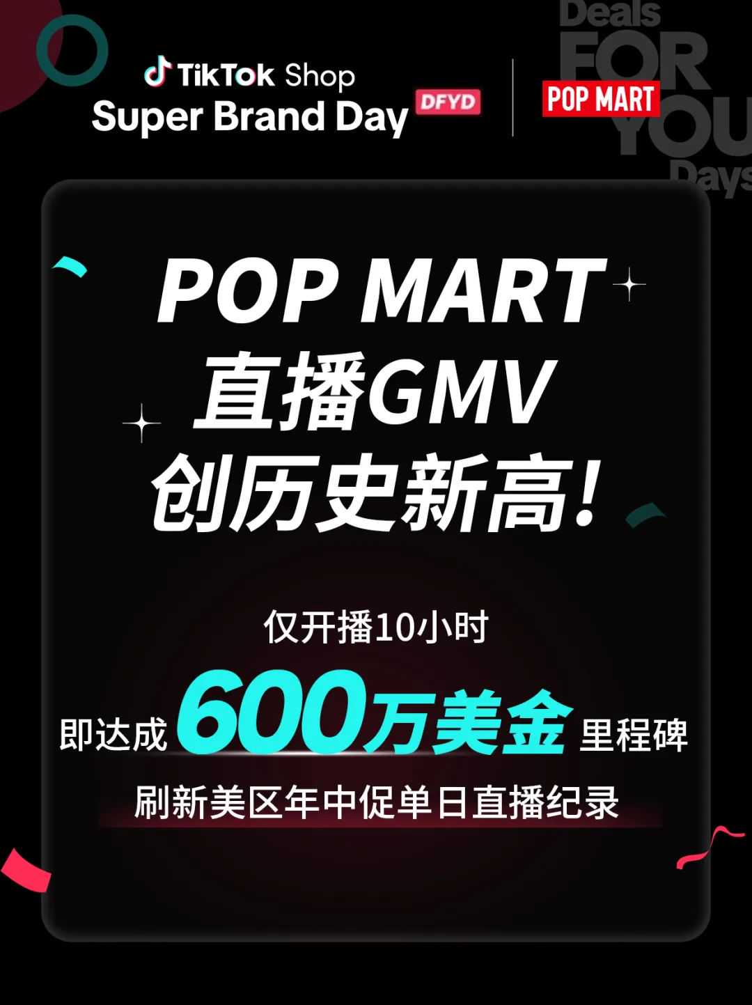 根据TikTok官方消息,中国潮玩品牌泡泡玛特在TikTok Shop美区的年中大促中,直播带货GMV创历史新高,刷新年中促单日直播记录。
