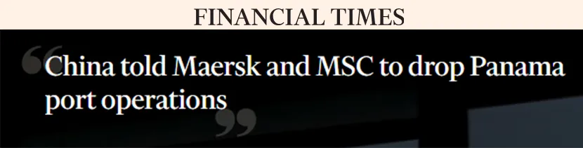 据英国《金融时报》4月15日报道,中国已要求马士基和MSC公司立即停止运营巴拿马运河上的巴尔博亚港和克里斯托瓦尔港。