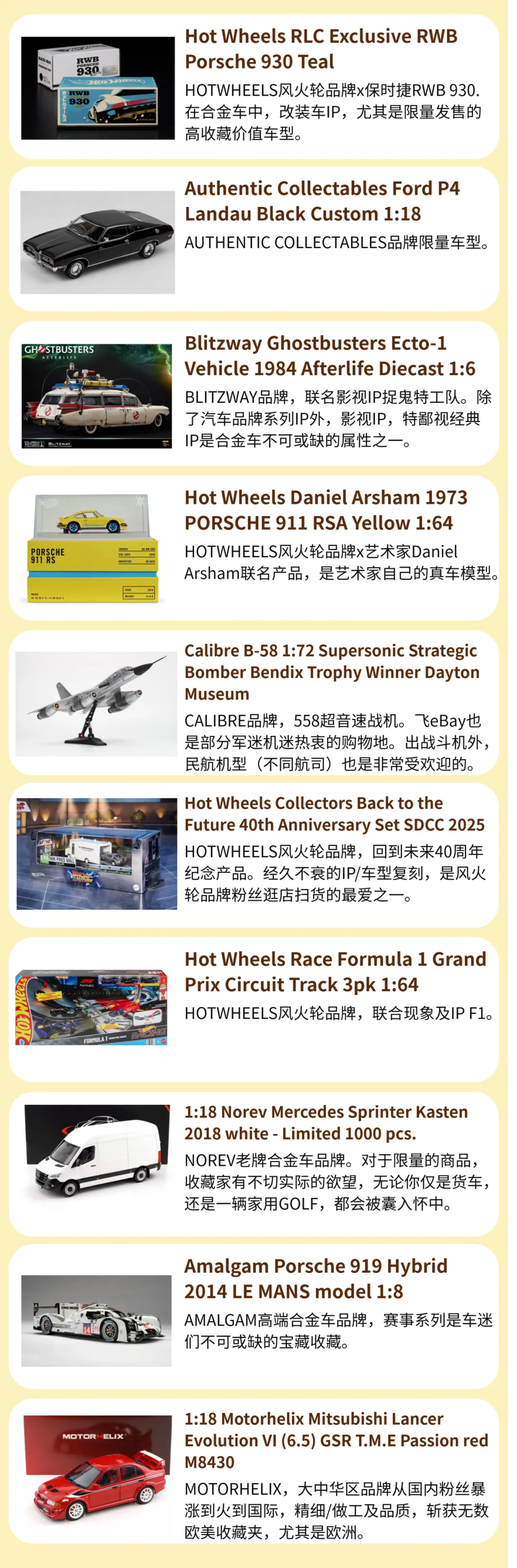 结合本期榜单,可以归纳出当前eBay平台上合金车品类的几个典型特征:
