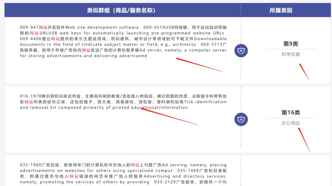 以"网站"为例,搜索结果不仅有中英文对照,还会显示相应群组所属的类别,方便卖家进一步了解详情。