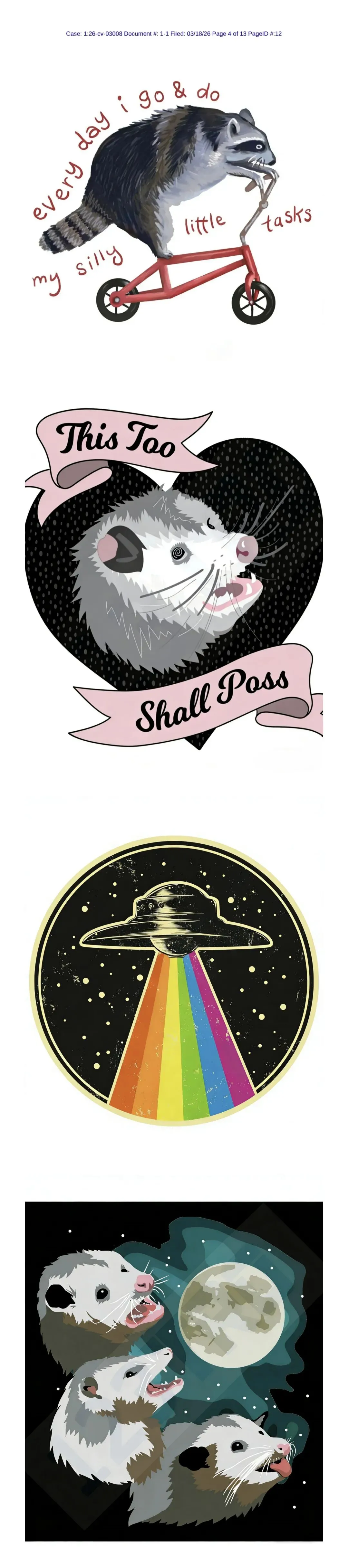 据美国法院官网的最新资料,我们关注到近期Keith又代理了三起全新版权TRO案件,共涉及11幅全新插画图版权,分别是:Christian 影视插画【26-cv-03038】,Zeraph 奇特插画【26-cv-03008】,Grazyna 咖啡分类插画【26-cv-03053】。根据诉状提示,三个案件共有300余家店铺中招,但目前名单未公开。案件详情如下: