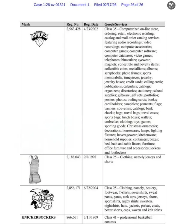 原告品牌:New York Knicks