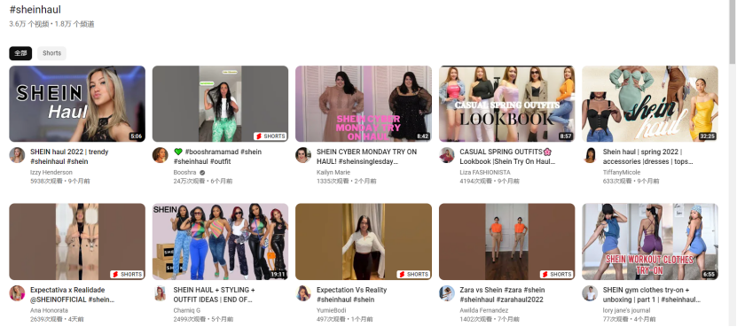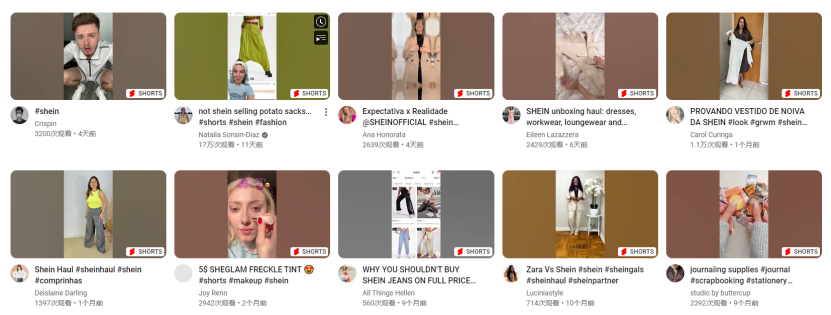 在一系列的活动刺激下,大量用户自发发布SHEIN相关的视频在YouTube上,为SHEIN在社交媒体上的热度又加了一把火。