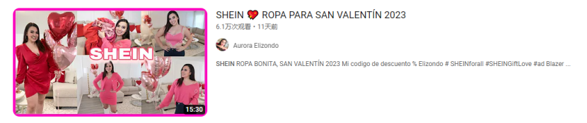 当然伴随着节日营销热点,SHEIN也联合KOL推出了充满节日气息的视频内容,比如情人节穿搭思路或是送礼灵感等等。