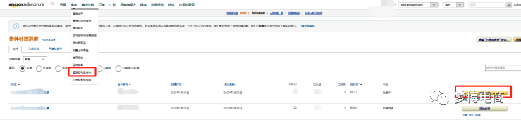 为了资金周转以及维持一个动态库存(在途库存和FBA库存能维持N天的销量),每周都需要补货,我们选择的是海派,特殊情况会补空派或者快递(紧急缺货的情况才不得不选择成本高的物流方式)以下讲述本公司的美国站最常见的每周海派的各个环节:运营计算发货数据--主管审核发货数据--运营创建出货计划并发布发货数据--仓库接收发货数据--仓库反馈装箱数据--运营接收和填写装箱数据--仓库粘贴外箱单--物流公司拉货以及财务报关资料的制作以上这些环节就是我认知中的海派发货流程,下文将开始一一详解,希望对亲力亲为的小微企业能起到借鉴意义,欢迎指出环节中可以完善和补充的需要。计算思路:补齐在途库存 以至于其加上FBA库存能够维持50天的销量需要下载的表格:《管理亚马逊库存》、《业务报告》子商品7天和30天的销量下载途径:1、数据报告/库存和销售报告/库存/管理亚马库存/下载(需要大约十几秒的缓存时间后才能点击下载报告) 2、数据报告/业务报告/子商品详情页面上的销售量与访问量/选择日期范围7天以及30天的下载《业务报告》(注意结束日期选择当前日期前两天,比如今天中国时间19号,后台就要选择17号才会有数据)找到管理亚马逊货件中的在途货件:这个希望大家每发一批货就记录在一个专门的表格中,包括发货时间和预计到货时间以及各个SKU的发货数量,这就知道了店铺产品在途数量。以上提到了两个表格分别是FBA实时库存和销量情况,再结合在途数量我们可以制作出一个计算发货数的表格:首先做个店铺产品的SKU/ASIN/FNSKU对照表本周补货参考:补足约50天销量库存=7*7天销量-(FBA+在途库存)以上出来的发货数据是参考值,挑出需要发货的SKU,然后参考本地仓库的实际库存情况来对发货数据进行考量:可以让仓库主管发你当前产品的库存,我们是用ERP记录库存,所以运营可以直接上ERP查询,填入发货的表格中。注:补货数是根据上面得出的“本周补货参考”取整,仓库库存不足的标红(注意仓库库存数量包含了次品数,所以需要减掉几双),算出向供应商获取的最少数量,我们向工厂请求某些sku先发小批量过来应急,等工厂反馈数据后,才能得出一个比较准确的发货数。主管针对准确的发货数进行审核并提出建议,最终把能发的准确数量发给运营去安排执行。运营根据最终准确的发货数量,在后台创建出货计划,出货计划的创建完成需要分成两部分:确定发补货SKU数量确定亚马逊仓库+确定装箱数量完成货件。前半部分我们之前一向手动选择SKU并一个一个填写数量,后来发现有批量上传模板填写,上传完成后在后台手动确认数量和仓库并继续,如果SKU较多的情况下可以尝试一下。以下介绍原先在后台是怎么创建出货计划的前半部分: 库存/管理库存/展开父变体,可以利用快捷键Ctrl+F查找选中(记得一定要选中FBA的listing,不然到下一步会重来,大家可以在前一步选中“亚马逊配送类型”)勾选完后点击搜索框旁边的按钮,再点击“发/补货”,会自动跳转到下个页面点击黄色按钮“是,继续” 系统提示几秒钟后会自动定向到“发/补货”界面