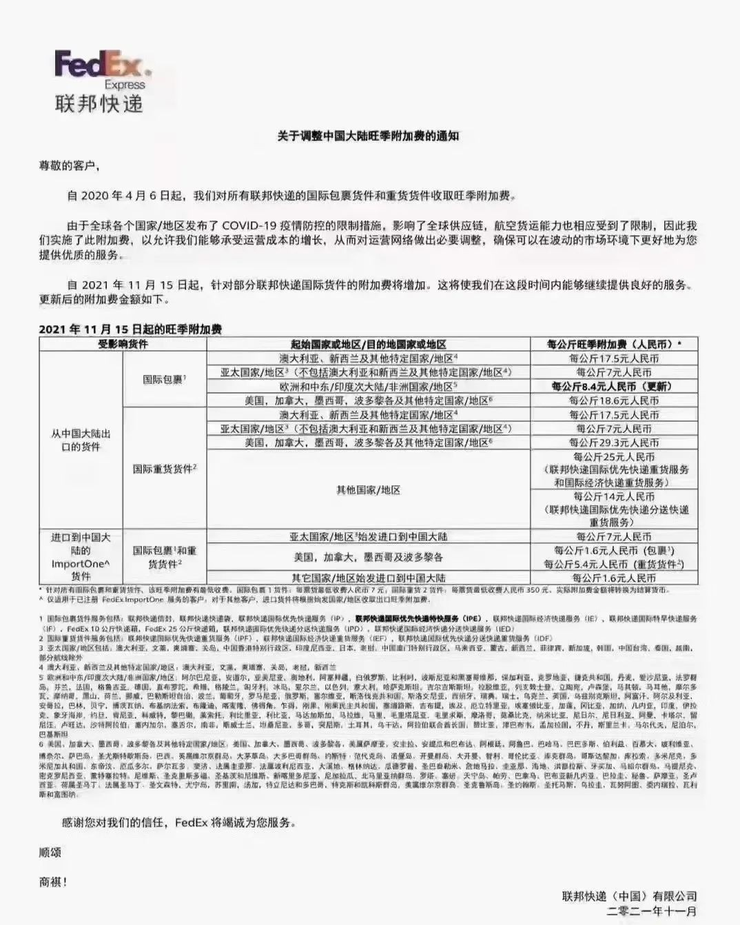 又要涨了!海运价格即将又会迎来上涨、联邦快递旺季附加费上调!!