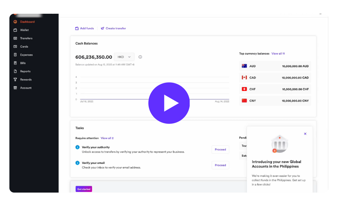 Airwallex 空中云汇全球范围内的企业客户,现可即时创建菲律宾比索(PHP)全球收款账户,并通过 InstaPay、PESONet 这两大菲律宾本地银行转账方式直接收取菲律宾比索,资金存入多币种账户余额。