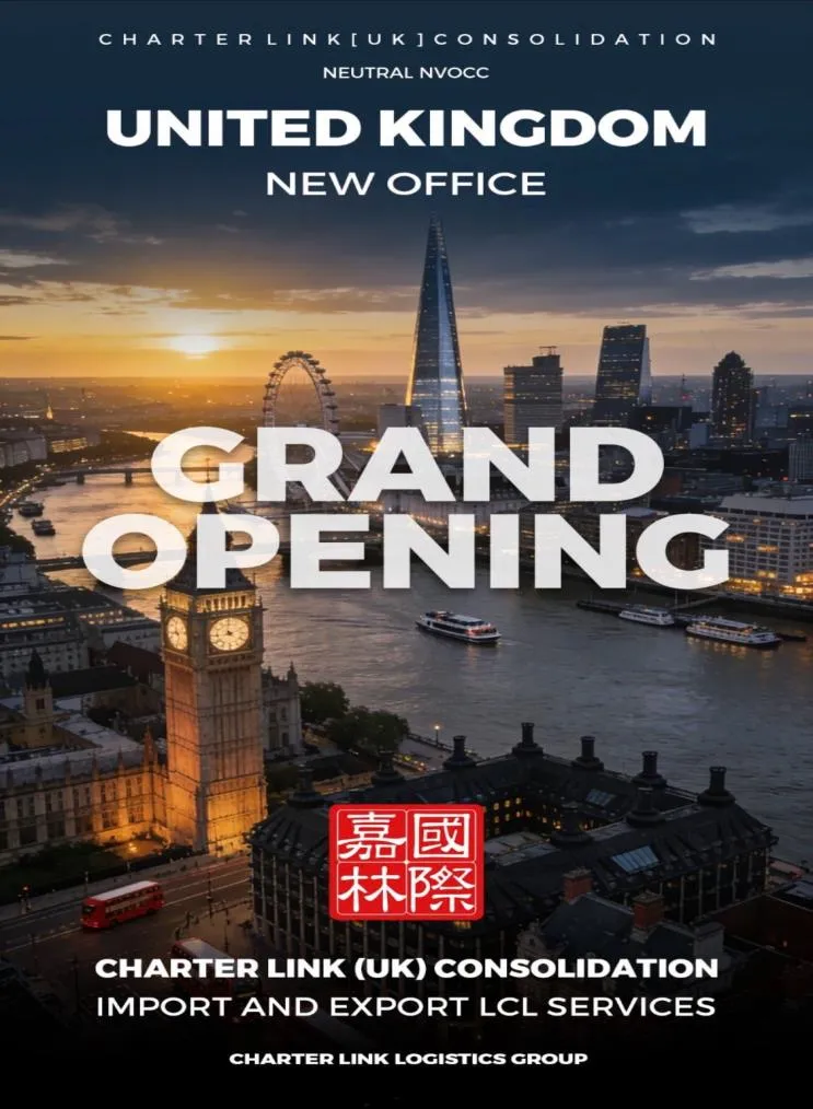 全球领先的海运拼箱(LCL)集运企业,嘉林国际物流集团(Charter Link Logistics Group, 简称 CTL) 隆重宣布在英国设立首家办公室。新成立的嘉林(英国)集运有限公司已正式全面投入运营,标志着嘉林国际全球扩张战略的重要里程碑。
