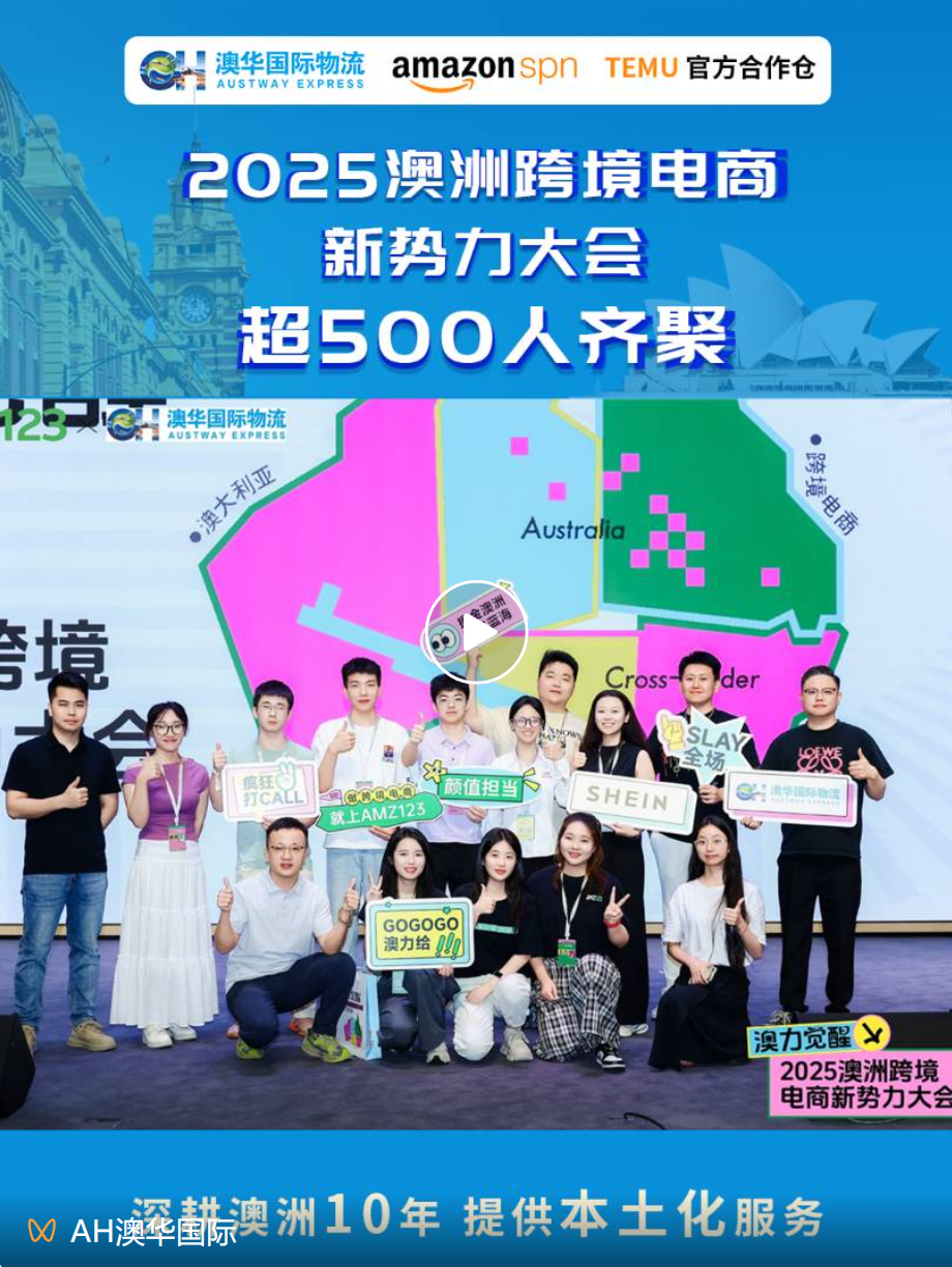 8月1日,由澳华国际物流总冠名、携手行业先锋AMZ123共同打造的「2025澳洲跨境电商新势力大会」盛大举行。这场聚焦680亿澳元巨大蓝海的行业盛宴,以其前瞻视野与实战价值,吸引了超500位电商卖家踊跃奔赴。