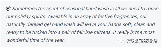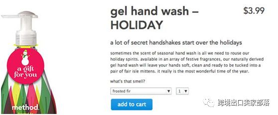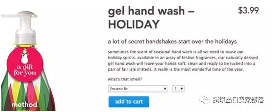 Method Home告诉买家,他们的洗手液不仅能让使用者的手变得干净细滑,还能增加节日气氛,为人们带来节日的愉悦感。
