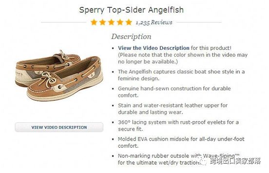 Zappos没有一条产品要点直接提及产品质量,但每一条都指出了产品的某个特性,让人感觉产品质量上佳,如:
