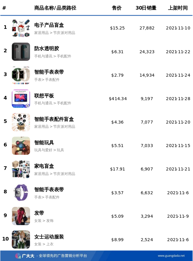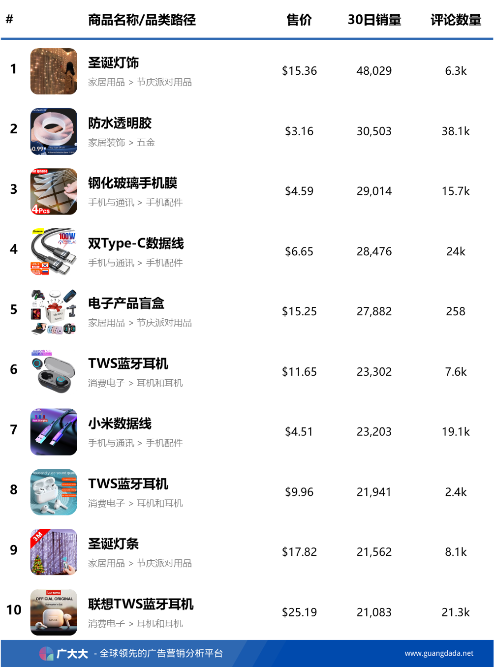 圣诞假期是跨境电商卖家每年的最后一波狂欢,而选品的成功率决定了卖家的节日战绩。本文将整理全球速卖通11月全品类热销商品Top 10榜单以及11月份新上架的热销新品Top 10榜单,为卖家选品决策提供参考,助力卖家实现圣诞大卖。