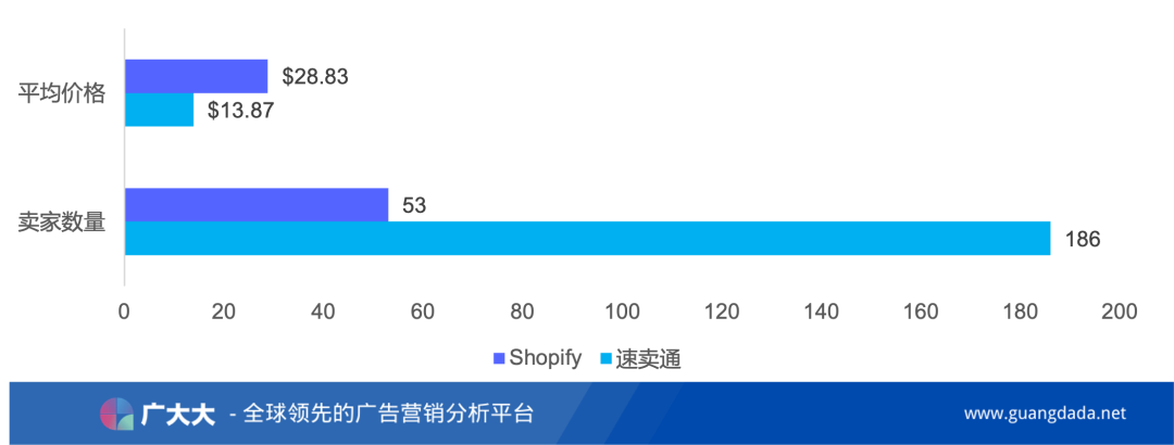 竞争情况 ![]() 数据解读:该商品竞争十分激烈,速卖通同商品卖家数达186家,Shopify中也有53家。价格竞争方面,速卖通平台价格竞争整体较为激烈,评价售价约13.87美元,Shopify平台平均售价则相对较高,为28.83美元。 |