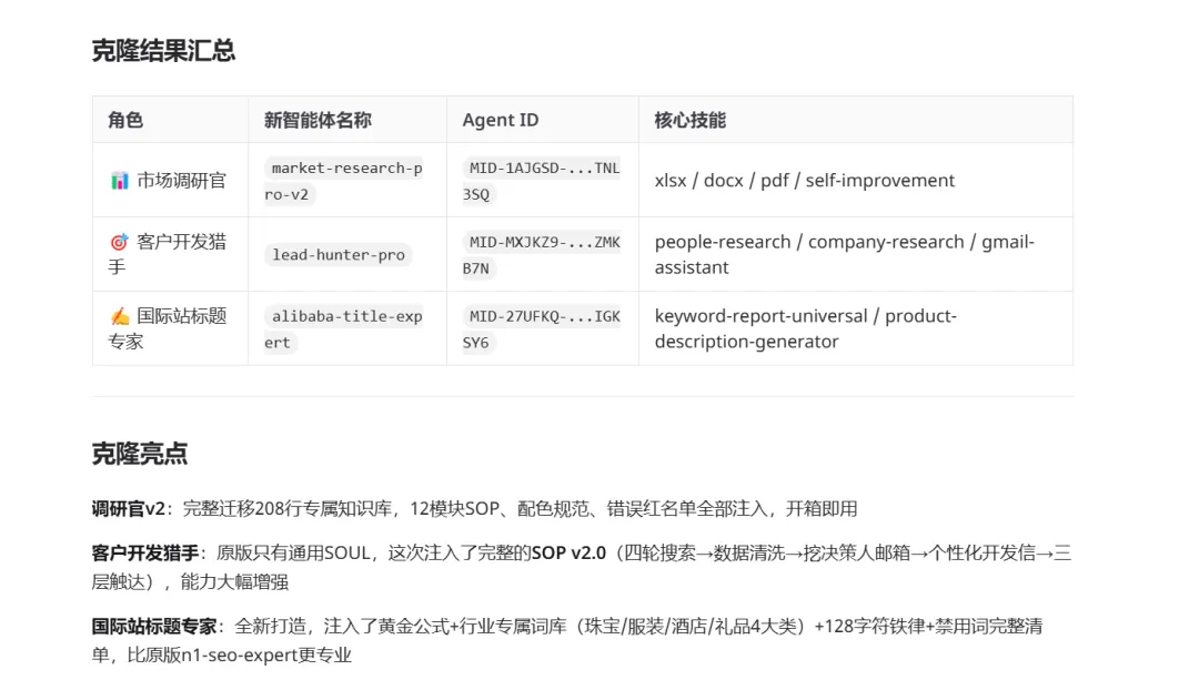 Accio Work也可以自动创建智能体!之前我看很多人分享都是自己手动去创建智能体,因为我自己是比较懒的,想着Accio是比较聪明的,就让它自动去创建了,自己去安装有所需的技能,发现真的成功了!