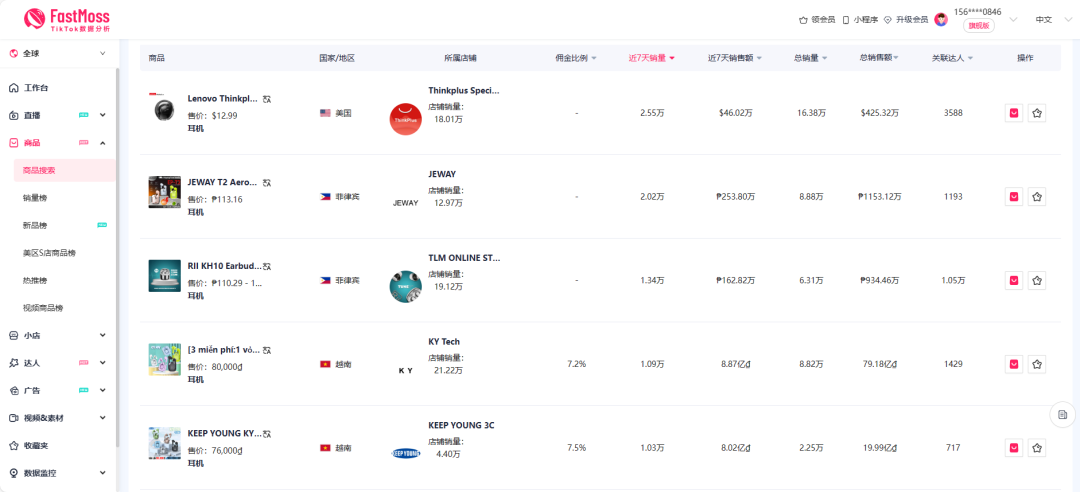 图源:FastMoss - 商品搜索
