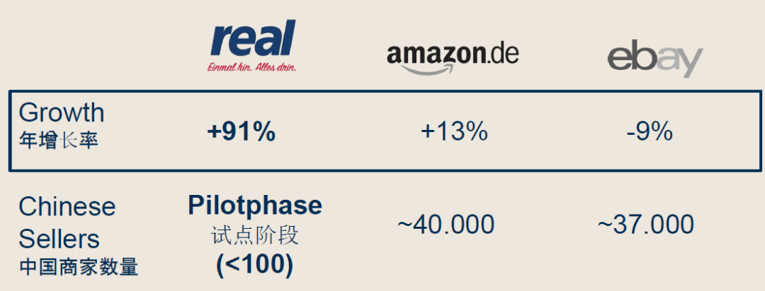 如此庞大的覆盖面和流量,real.de将为首批中国商家带来巨大增长潜力,有人形容其为2010年的亚马逊,竞争少、增长快、收入高、而你只要做的仅仅是上传产品。