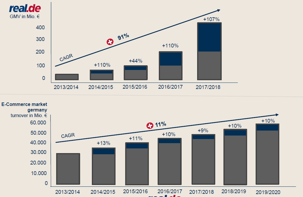 德国电子商务年增长率为11%,而REAL.DE增长超过91%。