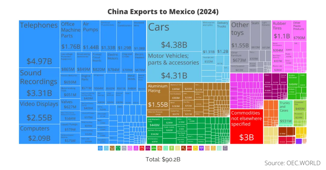 周三,墨西哥国会批准了法案——对来自未与墨西哥签订贸易协定的国家,包含中国、印度、韩国、泰国和印度尼西亚等的1400 多种产品(包括汽车、汽车零部件、纺织品、服装、塑料和钢铁等)进口征收新的关税——5% 至 50% 的关税。