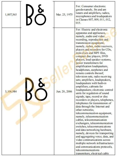 原告公司成立于1925年,是一家由工程师 Peter Bang 和 Svend Olufsen 创立的无线电制造商。原告致力于向高端消费电子市场推出音频系统、电视、电话、扬声器、条形音箱、耳机以及配件。案件涉及商标众多,未经允许不得使用!