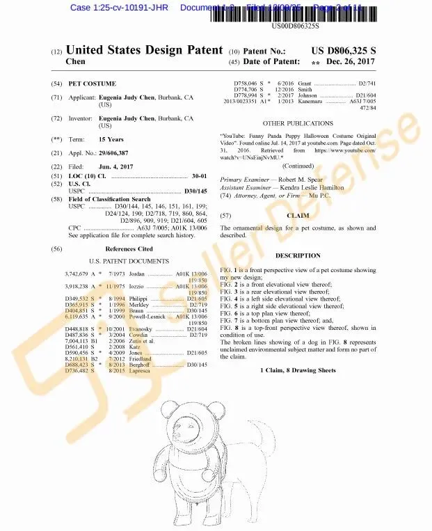 原告 PANDALOON 是一个有趣的宠物服装品牌。PANDALOON 的产品通过 Pandaloon.com、Amazon.com、宠物商店和其他授权零售商销售。本案为商标+专利双重维权,请相关卖家注意排查避雷!