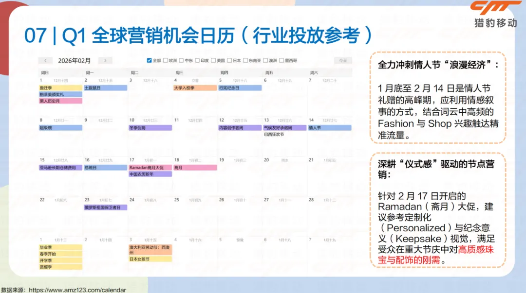 2026年营销不应再以Q4为唯一核心。深耕“仪式感”驱动的节点营销:针对2月17日开启的Ramadan(斋月)大促,建议参考定制化(Personalized)与纪念意义(Keepsake)视觉,满足受众在重大节庆中对高质感珠宝与配饰的刚需。