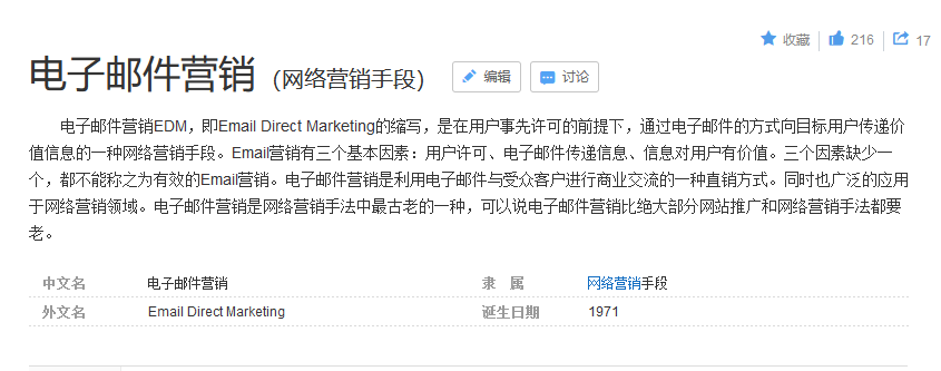 这是百度百科的解释,通俗点讲就是给客户发邮件。