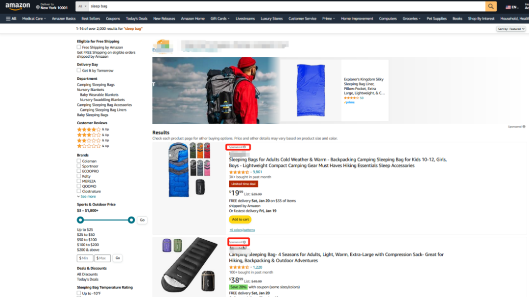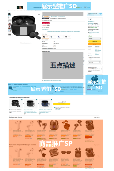 搜索结果页: 这个稍微复杂点。当某个自然排名靠前的商品正好符合你设置的定向条件(品类或ASIN),你的广告就有机会出现在搜索结果页上,靠近这个商品的位置。