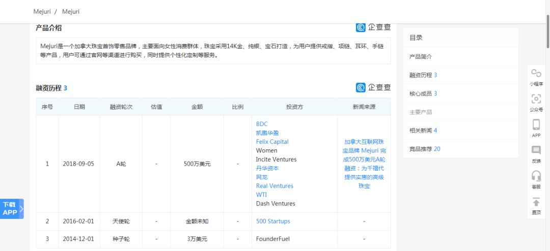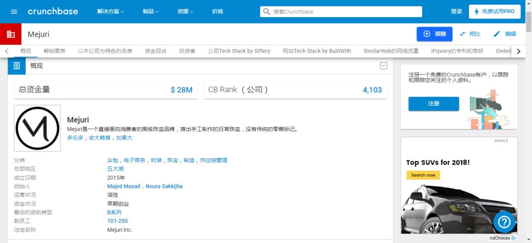 通过Crunchbase企业服务数据库网站,可以看到Mejuri品牌总资金量2800万美元。