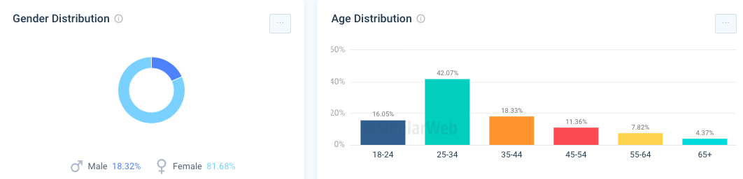 网站访客集中在25-34岁的女性用户,这一群体也是互联网购物的主力军。