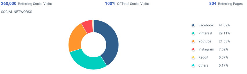 社交媒体导流上,Facebook、Pinterest、YouTube、Instagram四个平台为主带来流量。
