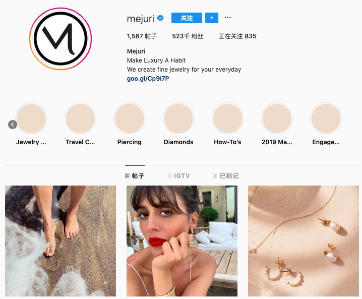 因适中价格和不亚于高级珠宝的质感,许多年轻女性成为了 Mejuri 的忠实客户,其 Instagram 有 51 万粉丝。