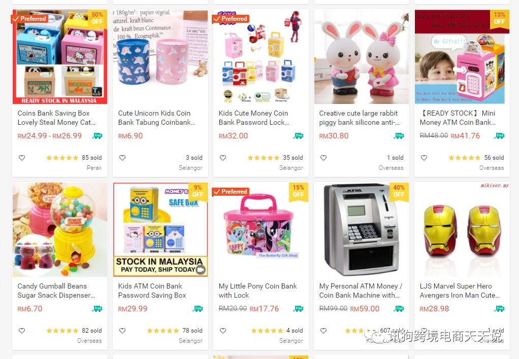 我们随意找了个Coin bank(存钱罐)的关键词去搜索,