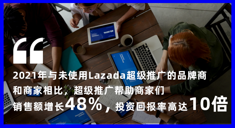 真实的使用数据如何? 通过往期的数据对比,我们发现:对于使用过超级推广活动的品牌商和卖家,其转化率提高了15%,投资回报率提高了21%,点击率也提高了41%。 仅在在过去的2021年中,与未使用Lazada超级推广的品牌商和商家相比,使用该方案的品牌商和商家销售额更是增长了48%,投资回报率高达10倍。