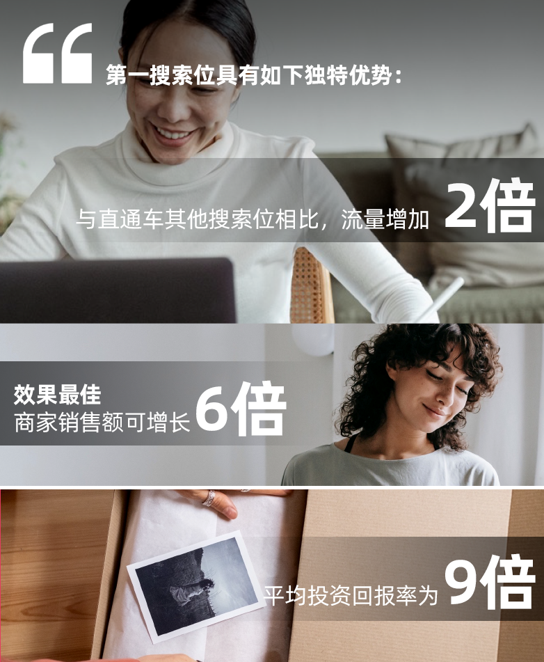 在超级推广中,商家可以借助Lazada全效宝,将促销商品与相关度最高的消费者进行匹配。全效宝将直通车和超级推荐相结合,形成强劲解决方案。商家还可以通过竞价第一搜索位(直通车里的第一搜索位)进一步扩大直通车规模。